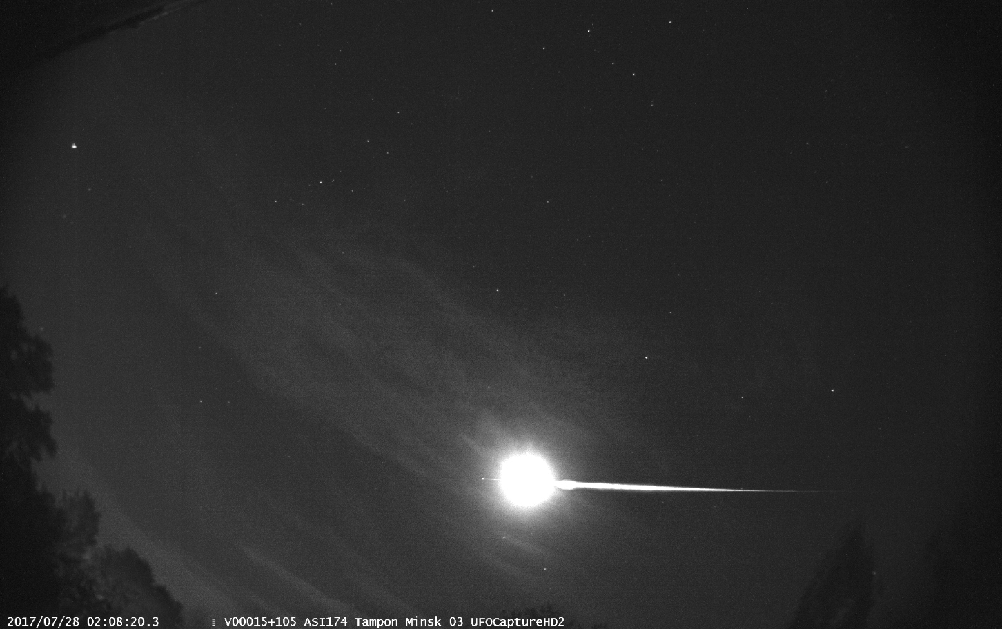 Болид -7m. 27 июля 2017 года. 23:08UT. ZWO ASI 174MM, Tamron 12VG412ASIR-SQ 1/2-inch Aspherical IR Varifocal Lens, 4-12mm F/1.2 IR Day/Night