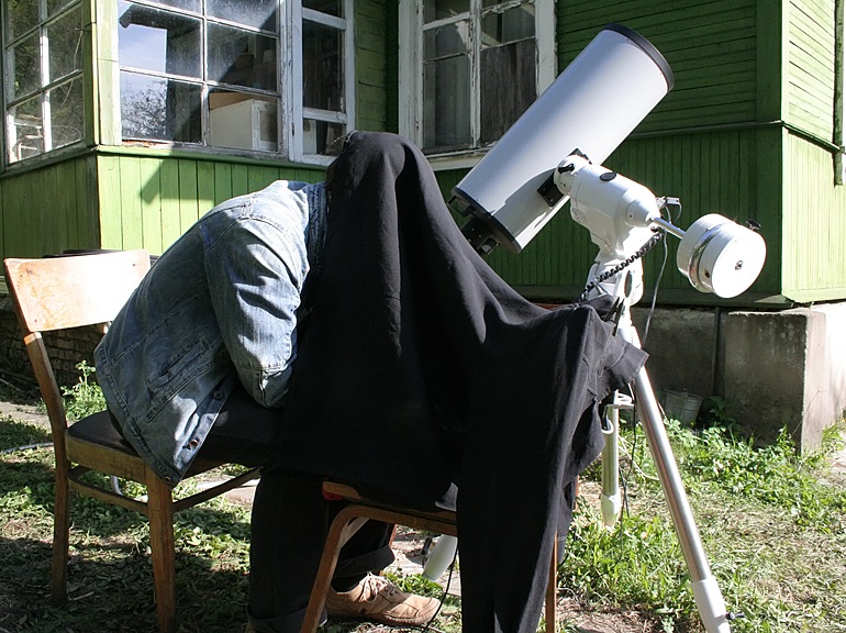 Выезд осуществили вечером 3 мая. Меркурия ловить было уже поздно, поэтому решили выставить поточнее оси телескопа, чтобы на утро воспользоваться системой GoTo монтировки. Долго возиться не пришлось – небо затянуло облаками, и решили мы сворачиваться. Технику на улице оставлять не рискнули , занесли всё в дом, разметив расположение ног монтировки.