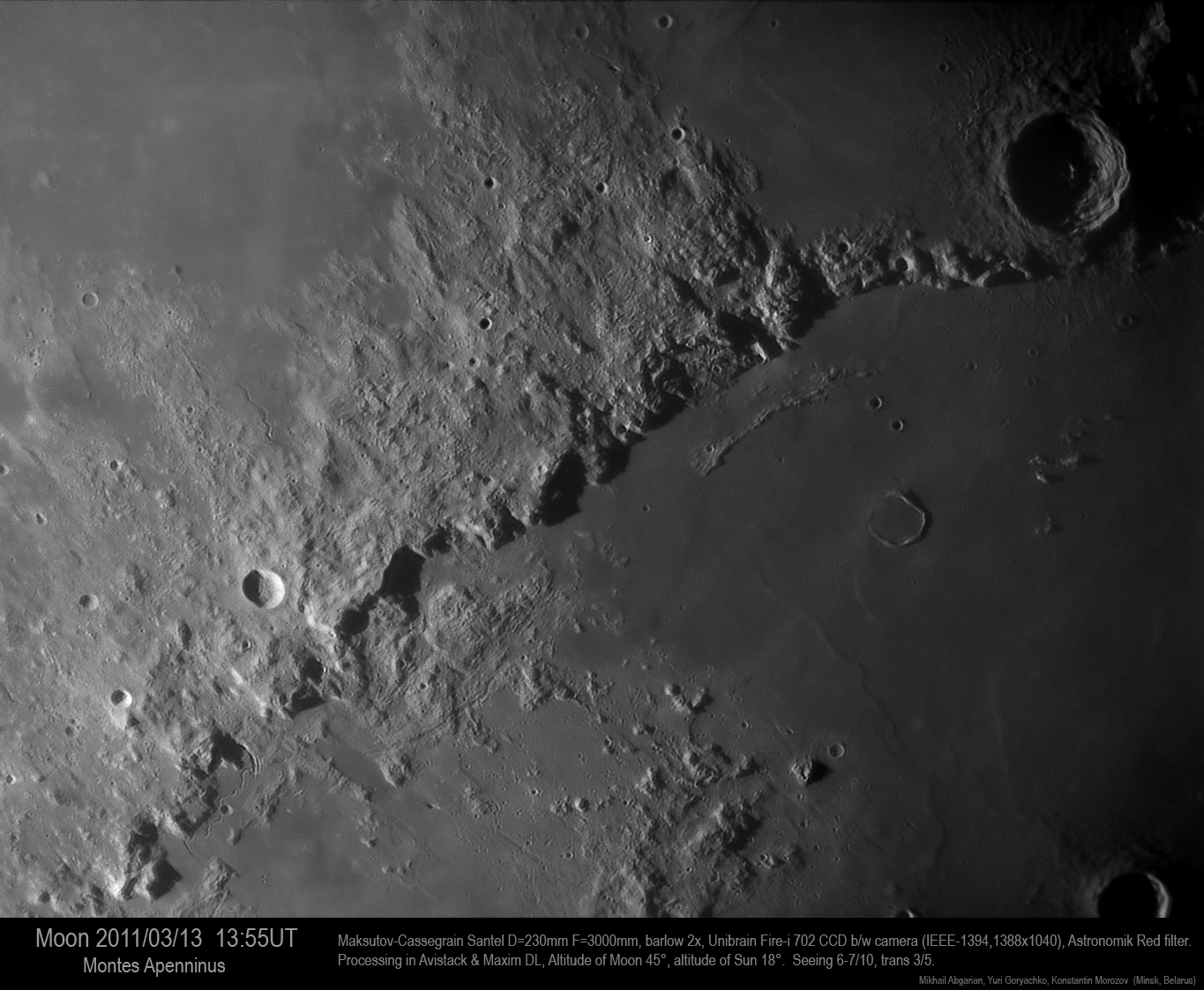 The Moon on March 13, 2011 - MONTES APENNINUS, ERATOSTHENES.