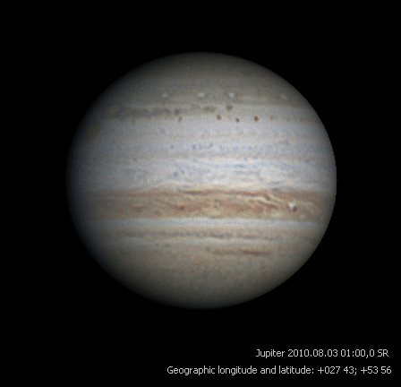Юпитер 3 августа 2010 года Вид Юпитера в каналах во время съемки: